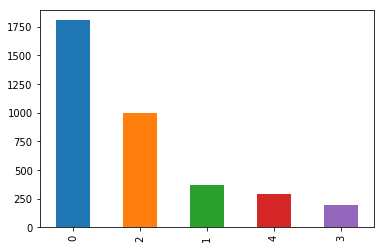 # checking for data imbalancesdata_in_use, base_dir, train_img_path, test_img_path, df_train = data_sourcecounts = df_train.diagnosis.value_counts() counts.plot(kind='bar')